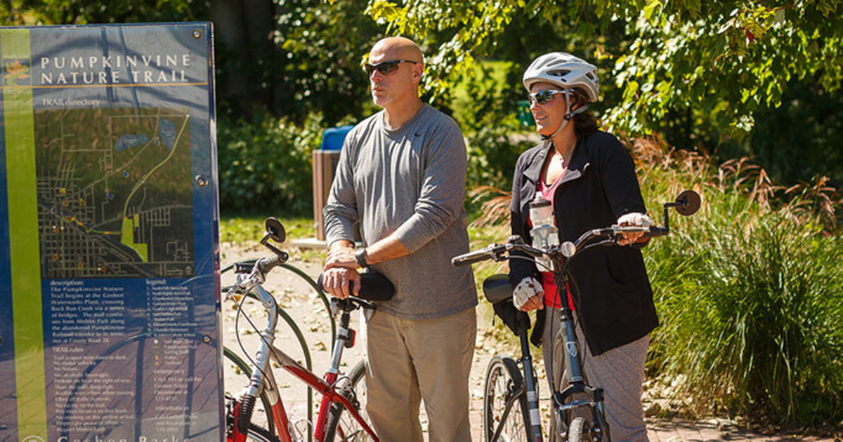 You brought the bicycles for a reason, so take them out for a leisurely spin at any of our local trails. Our bike trails are wide and generally flat and you can easily lose an afternoon in the rolling rural farmland along the Pumpkinvine Nature Trail, or the urban forests and woodlands along the Millrace Canal in Goshen.